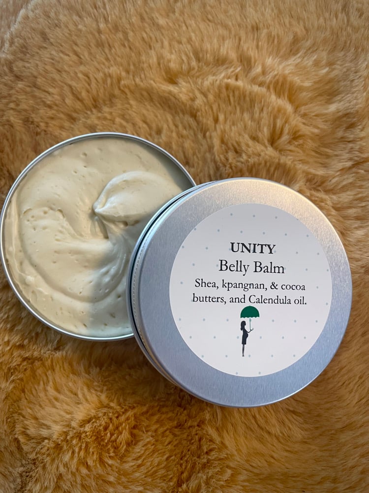 A natural healing balm that helps keep stretch marks at bay as your belly grows. A soothing mix of silk powder, cocoa, shea, kpangnan butter and sun-infused Calendula oil..